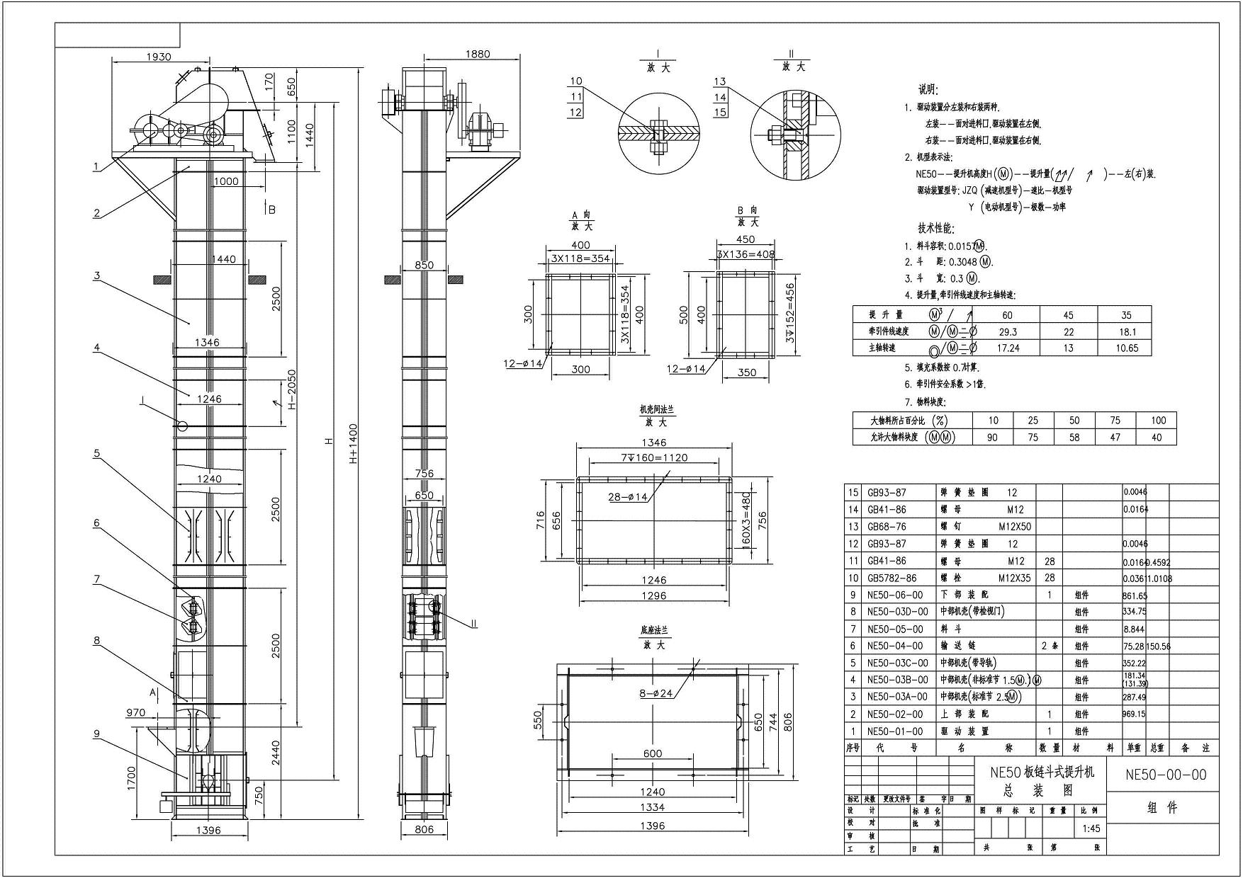 NE50斗式提升機外形圖及地基尺寸